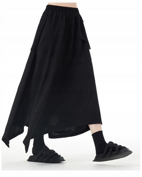 Aszimmetrikus, bő szabású szoknya fekete színben - Y2K stílus, zsebekkel, művészi (KMEC39)ALLEGRO