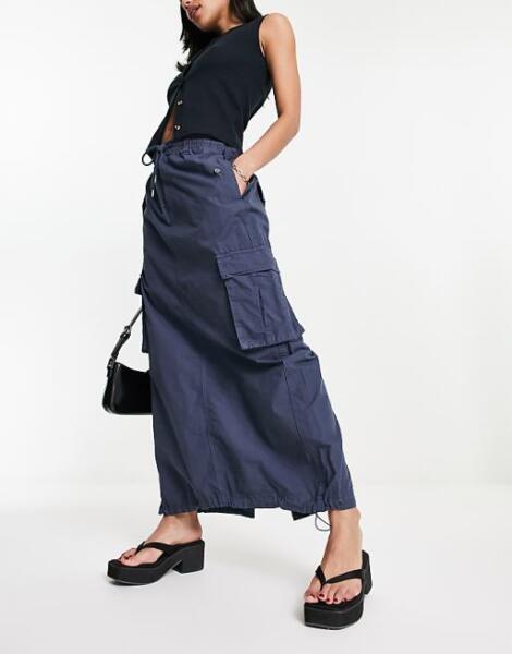 Bershka Sötétkék Maxi Szoknya Zsebek (xs) (567582)
