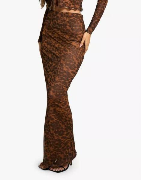 Boohoo Barna Testhezálló Hálós Leopárdmintás Maxi Szoknya Boohoo 34