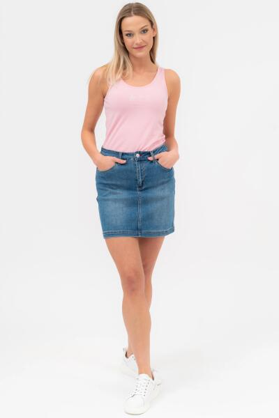 női farmer miniszoknyafém és műbőr címkével díszítve