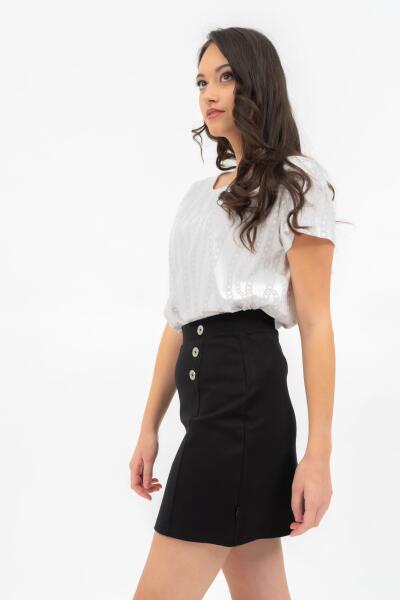 női miniszoknya rugalmas anyagbólfémcímkével díszítve