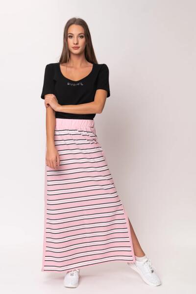 női csíkos hosszú szoknyagumizott derékrésszeloldalán sliccelején kis nyomott mintával