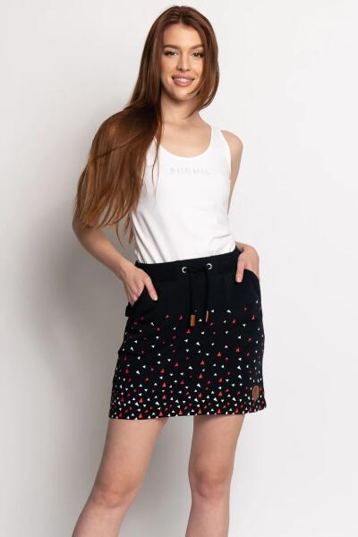 női rövid szoknya rugalmas anyagbólalapanyaga belül bolyhozatlanműbőr címkével díszített
