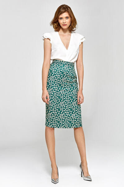 Magasabb derékkal rendelkező elegáns tokos szoknya, ami nem hiányozhat egyetlen hölgy ruhatárából sem. Egyenes, tokos kivágása tökéletesen követi az alakot, így nagyon nőiesen nézel ki. A szoknya hátul cipzárral záródik, hátul egy hasíték van. A modell 176 cm magas és 36-os méretet visel.