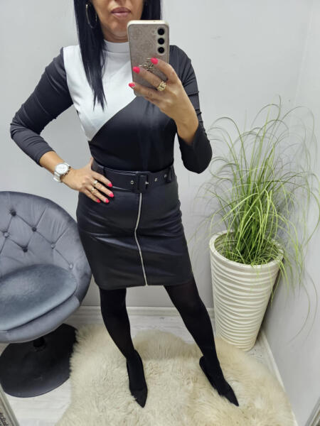Csinos elején cipzáras műbőr szoknya övvel (476064)