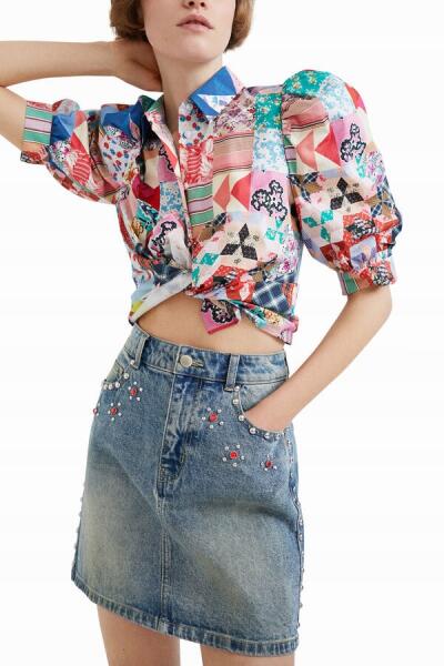 Desigual Kék Farmer Mini Szoknya, Size XS, pamut, cipzár, magas derekú (22SWFD15_5053)ALLEGRO