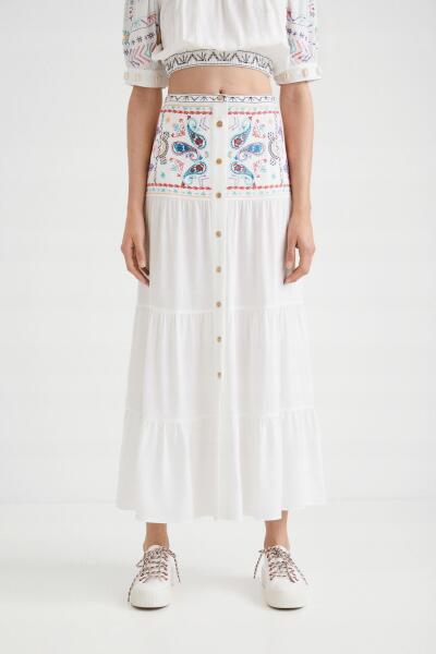 Desigual Krémszínű Midi Szoknya, gombokkal, Size S, viszkóz (22SWFW02_1001)