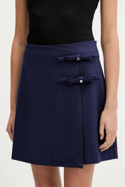 HUGO szoknya gyapjú keverékből sötétkék, mini, harang alakú, 50544796 - sötétkék 34