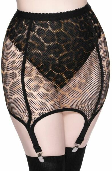 Stílusos női hálós szoknya, lábak (vagy harisnyák) rögzítésének lehetőségével. A modellen látható bugyi nem része a csomagnak. Az anyag rugalmas. Összetétel: 100% nylon. Szín: fekete, leopárd mintával. Márka: KILLSTAR.