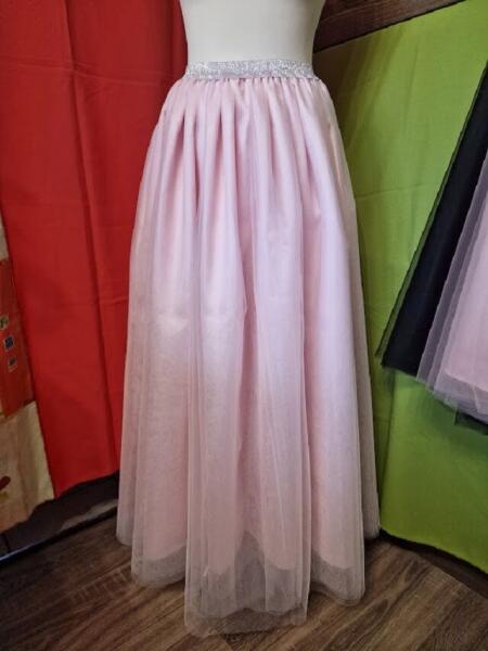 Lovaskate ESKÜVŐ ASZ36G - 5 rétegű rózsaszín maxi tüll szoknya csillogós derékkal