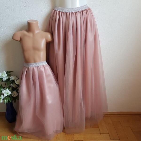 Lovaskate ESKÜVŐ ASZ36H48 - 5 rétegű maxi púderrózsaszín ANYA-LÁNYA tüll szoknya csillogós derékkal