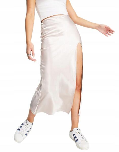 MIDI Szoknya Szatén Rózsaszín Egyenes Kivágás Gombok 36 S__s