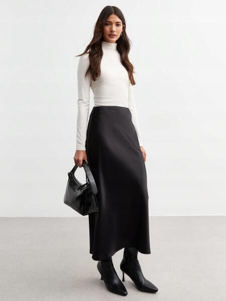 New Look Fekete Szatén Szoknya (46) (596422)