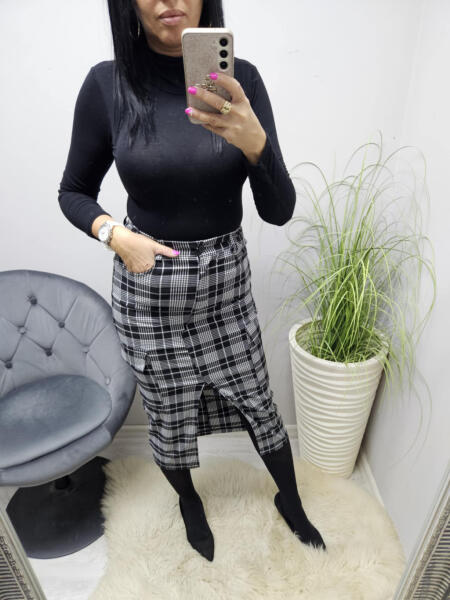 Norafashion Csinos elején felvágott kockás szoknya (696055)