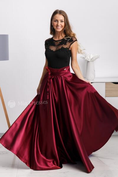 Parisse Bordó szatén szoknya hasítékkal Méret: XL