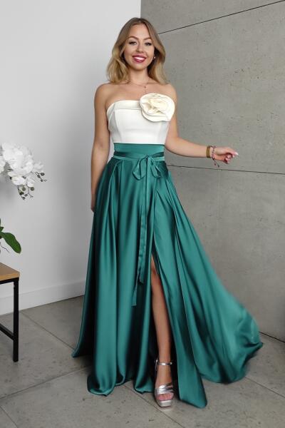 Parisse Smaragdzöld szatén szoknya hasítékkal Méret: XXL