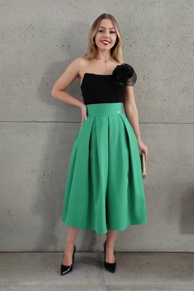 Parisse Zöld A-vonalú midi szoknya Méret: XS