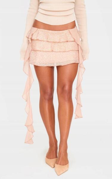 Prettylittlething Bézs Flitteres Miniszoknya Fodros Chiffon Prettylittlething 36ALLEGRO
