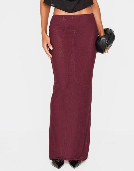 Prettylittlething Bordó Klasszikus Maxi Szoknya Egyenes Díszítéssel Prettylittlething 38