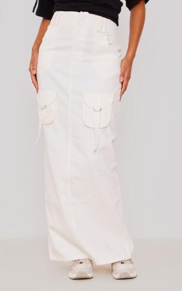 Prettylittlething CC22203 Military Maxi Szoknya Fehér Magas Derekú Prettylittlething (10) Xxs