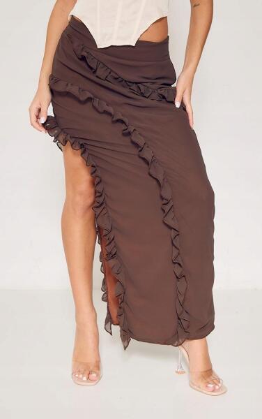 Prettylittlething FC26118 Szoknya Maxi Slicc Magas Állapot Fodros Plt Petite (10) S