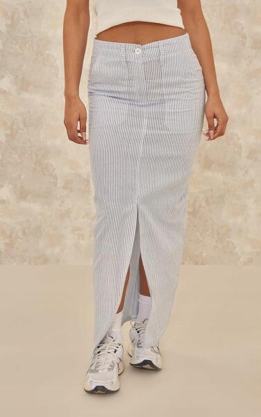 Prettylittlething Kék-fehér Maxi Szoknya Kivágás Csíkos Mintával Prettylittlething 40