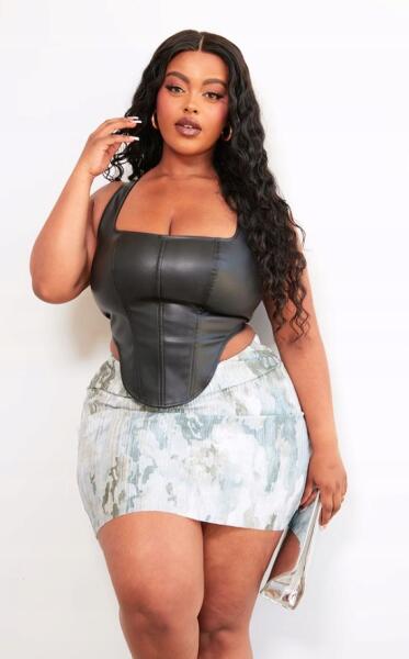 Prettylittlething Mintás Bézs Fodros Testhezálló Mini Szoknya Prettylittlething 40