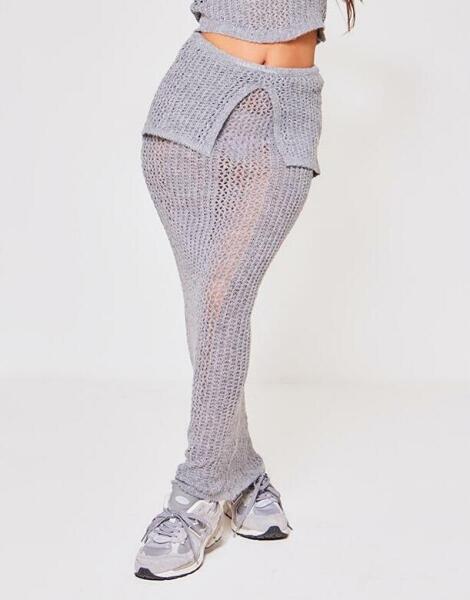 Prettylittlething Szürke Kötött Testhezálló Maxi Hosszú Szoknya Prettylittlething 34