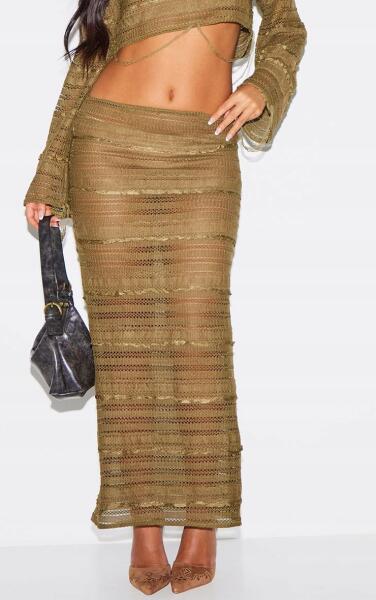 Prettylittlething XC13305 Maxi Egyenes Strand Szoknya Khaki Prettylittlething (12) XxsALLEGRO
