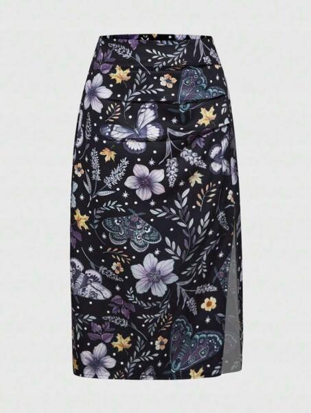 Romwe Fekete MIDI Mintás Szoknya (s)
