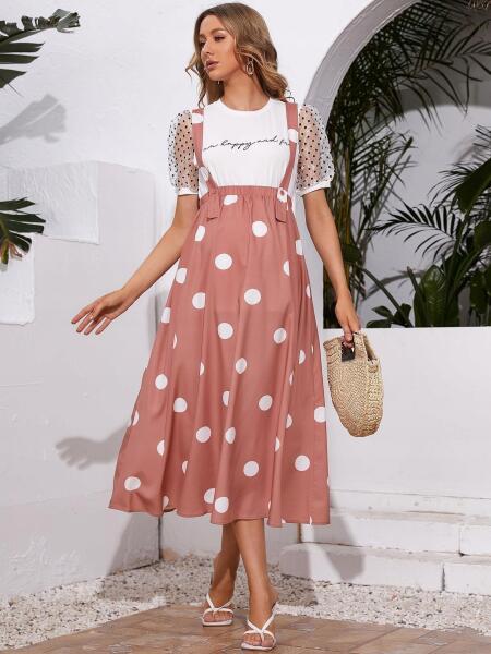 Shein DC22202 Shein Pöttyös MIDI Szoknya Vállpántokkal 46