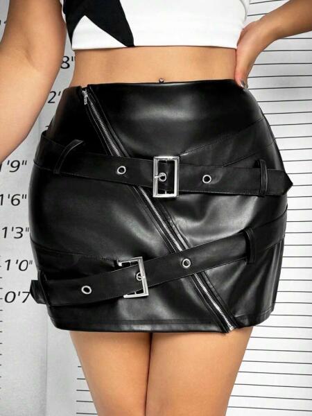 Shein Fekete Bőrutánzat Mini Szoknya (3XL)
