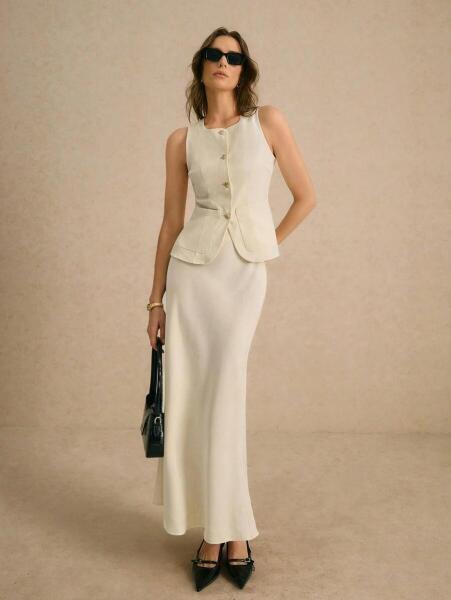 Shein KC12214 Shein Magas Derekú Maxi Szoknya Ekrü Színben (24) S