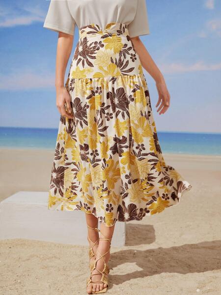 Shein KC61122 Shein Magas Derekú Szoknya Virágmintás (31) XL