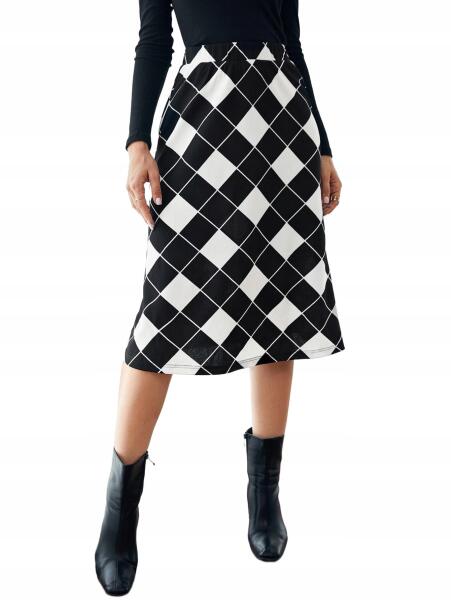 Shein Kockás MIDI Szoknya Fekete Fehér Casual 42 XXL__XL