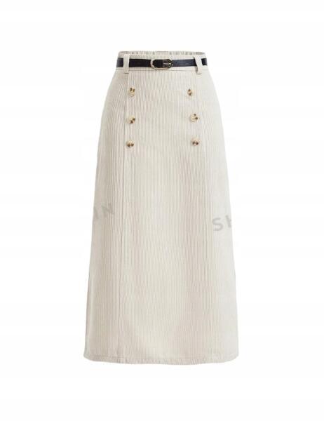 Shein Kordbársony Szoknya Krémszínű Gombos Öv 36 S__s