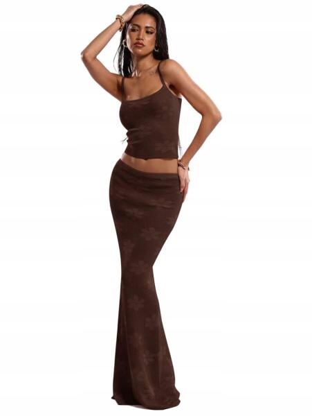 Shein Maxi Szoknya Barna Kötött Dekoratív Aranyszál 38 M __M
