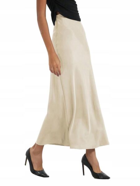 Shein MIDI Szoknya Bézs Szatén Egyenes 34 Xs__xs