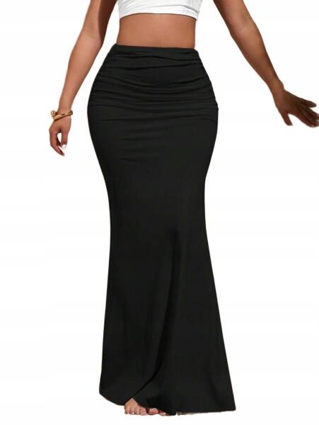 Shein Missguided Szoknya Fekete Maxi Elasztikus Fodros 38 M__M
