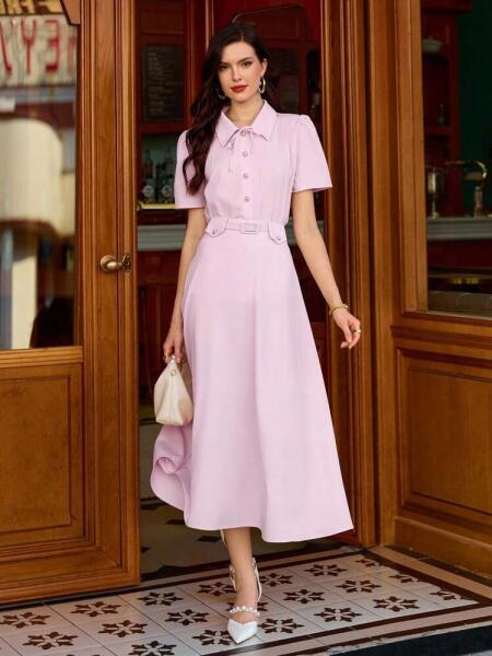 Shein Rózsaszín Ing Szett Szoknya Öv (L)