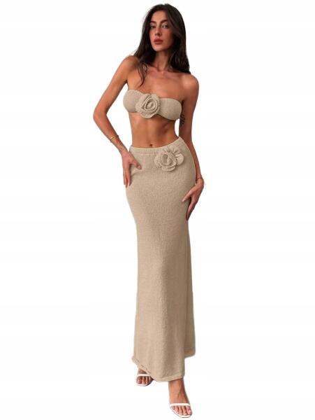 Shein Shien Szoknya Bézs Maxi Egyenes Applikáció Rózsa 36 S__s