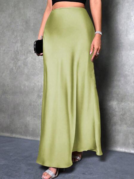 Shein Szatén Maxi Szoknya Zöld 36 S SALLEGRO