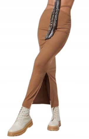 sinsay Barna Bordázott Kötött Midaxi Szoknya Viszkóz Egyenes Sima SALLEGRO