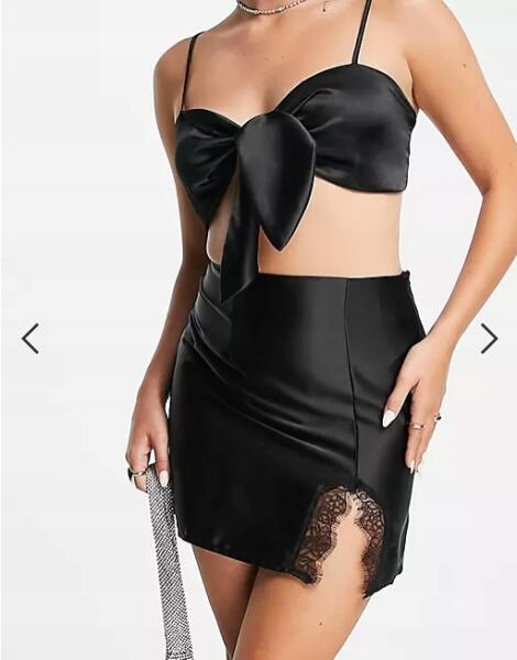 Szatén Szoknya Fekete Mini Egyenes 36 S 1ADUALLEGRO